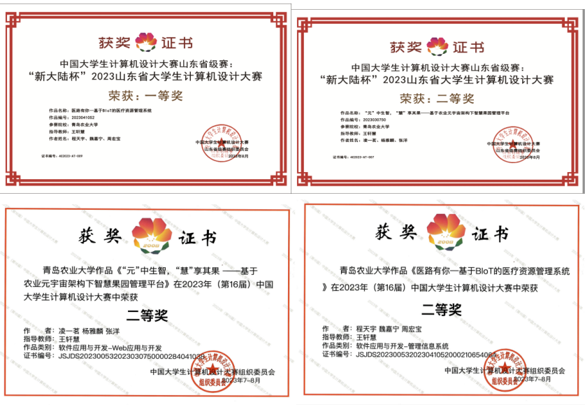 实验室团队力量雄厚,学习氛围浓烈。基于带领员工参加国家一二类创新创业竞赛,着重提升员工科研及探索能力的初衷,实验室自成立以来依托人才创业大赛高层次科技人才项目类,suncitygroup太阳集团高层次人才科研基金,横向课题等不同课题资助员工开展各类科技创新大赛,并且取得了丰硕的成果。2023年8月,由实验室成员主持并参与的中国老员工计算机设计大赛再夺佳绩,如组图2,申报的两个团队均获得省级和国家级二等奖的好成绩!