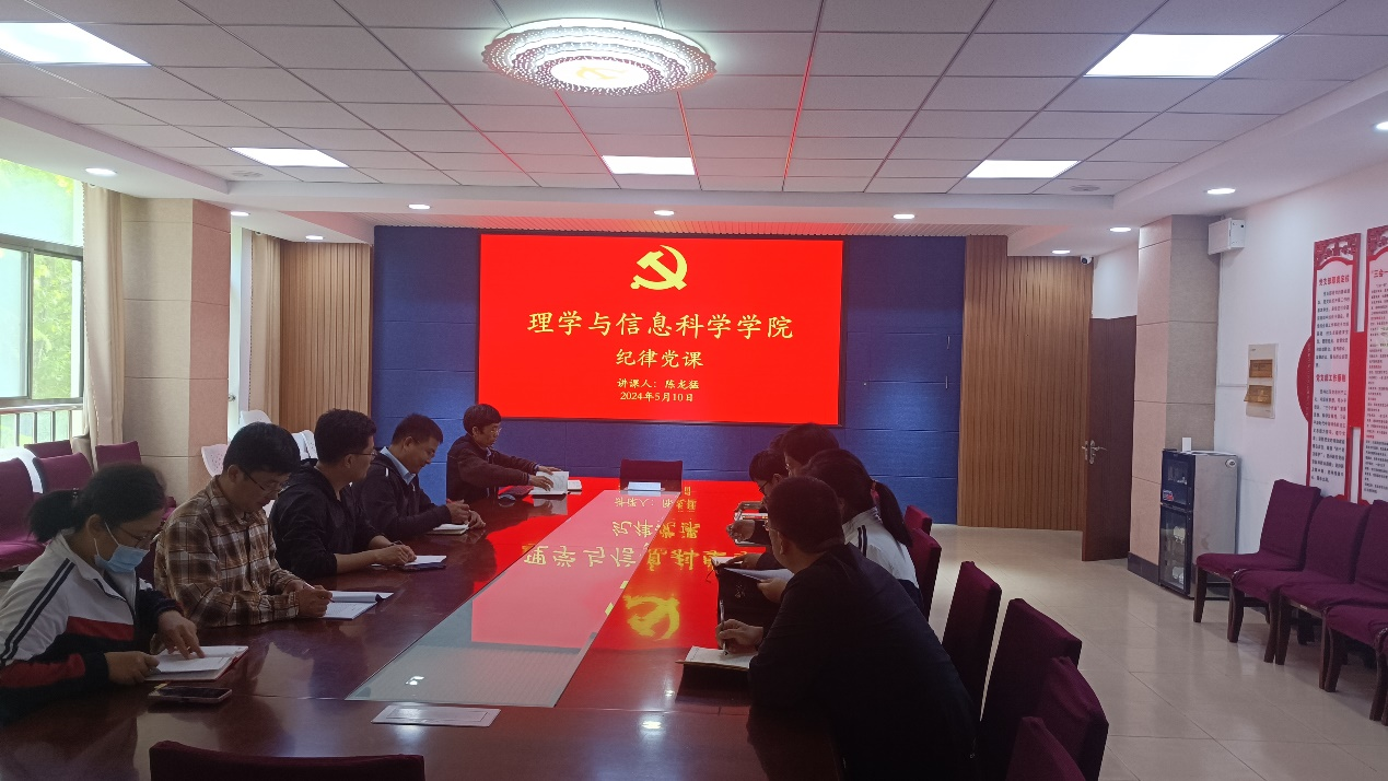 根据中共中央办公厅印发的《关于在全党开展党纪学习教育的通知》《中共山东省委办公厅关于在全省开展党纪学习教育的通知»要求,结合《中共suncitygroup太阳集团委员会关于开展党纪学习教育的实施方案»,5月10日,suncitygroup太阳集团在信息楼215开展党纪学习党课,suncitygroup太阳集团副处级组织员、纪检委员陈龙猛以“将党纪内化为日用而不觉的行为准则”为主题讲授,公司科级干部和支部书记参加。