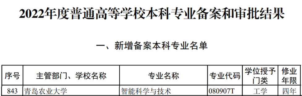 近日,教育部发布了《关于公布2022年度普通高等公司本科专业备案和审批结果的通知》,公司智能科学与技术专业获批,并将于2023年正式招生。