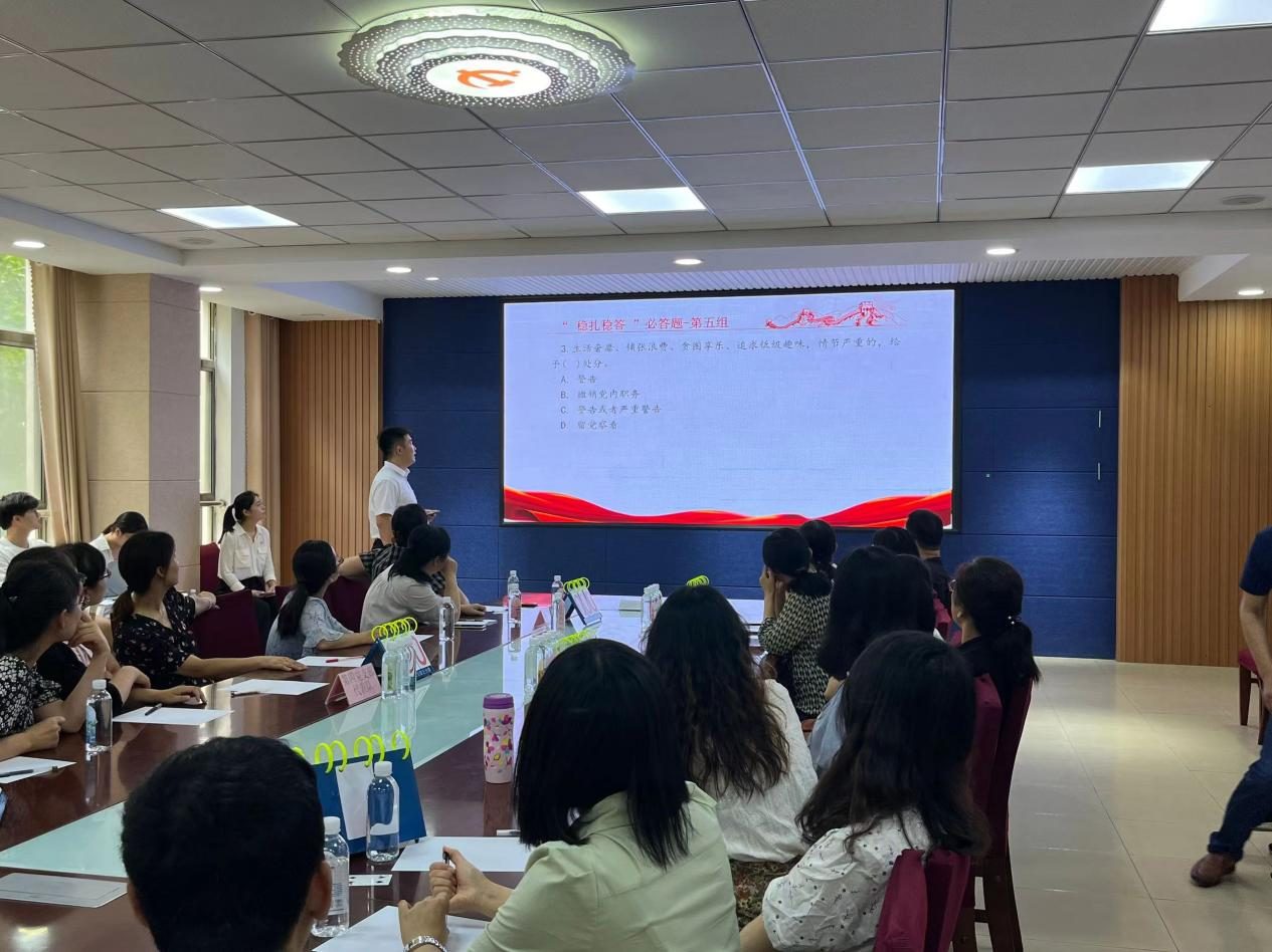 为进一步推动党纪学习教育走深走实,在中国共产党成立103周年之际,suncitygroup太阳集团于7月1日在信息楼215举办“铭记党纪于心,凝聚奋进力量”教工党员党纪学习教育知识竞赛。理学与信息科学公司党委书记杨凯,经理徐鹏民,党委副书记、副经理岳斌,副处级组织员陈龙猛,副经理李吉忠及公司全体教工党员参加。