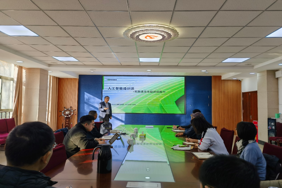 会上,马瀛洲介绍了英伟达公司助力人工智能课程和实践环境的情况,展示了NVIDIA深度学习培训中心的课程及学习模式,DIY平台提供的应用案例及学习操作。刘振斌介绍了公司员工分布情况,以及公司开设人工智能通识课程的思路及现状。随后,双方围绕如何利用NVIDIA平台建设符合公司特色的通识课程展开讨论。经过座谈交流,进一步加强了双方的相互了解,为后续深入合作奠定了坚实基础。