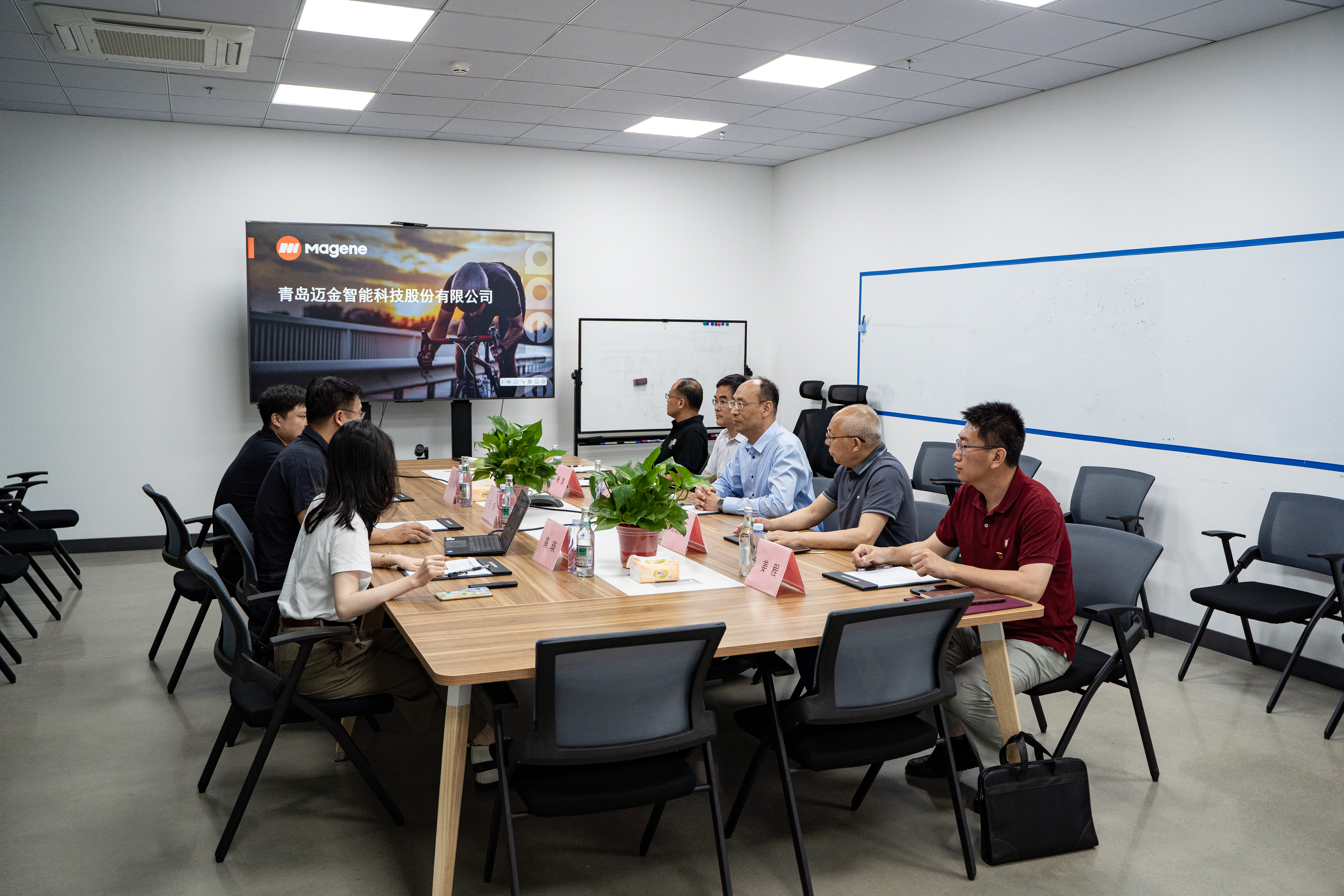 为深入贯彻落实党中央、国务院关于高校毕业生就业创业工作决策部署,落实上级部门“访企拓岗促就业”专项行动通知要求。6月4日,suncitygroup太阳集团副董事长孟晓军带队赴青岛迈金智能科技有限公司访企拓岗,理学与信息科学公司党委书记杨凯,经理徐鹏民,副经理刘振斌,团委书记姜程同行。计算机科学与技术专业2003级员工、泰山产业领军人才、青岛迈金智能科技股份有限公司董事长于锋接待了公司一行。