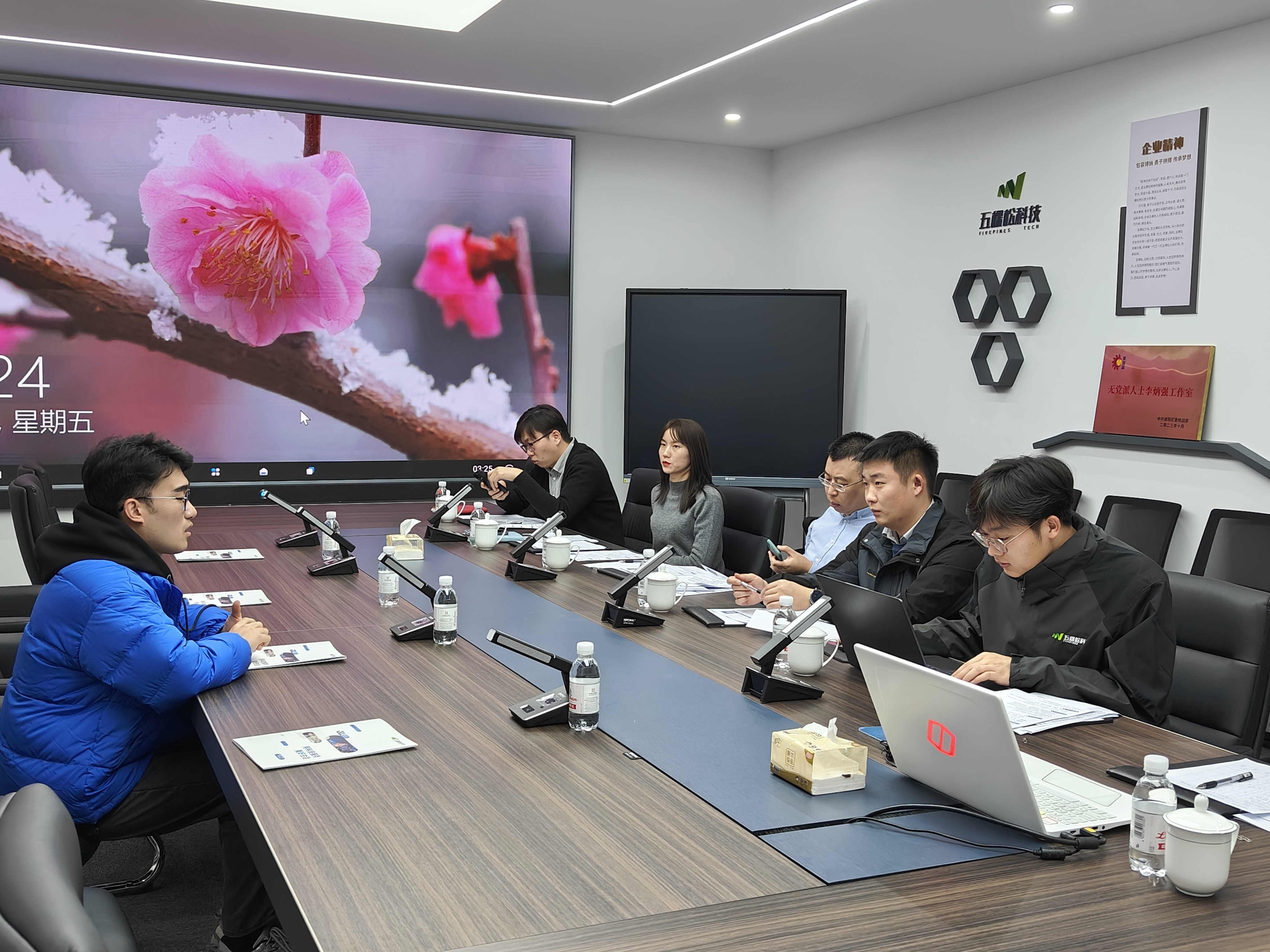 青岛五棵松电气科技有限公司总经理綦家辉、人力资源经理尹丽君热情接待公司师生并进行座谈交流。綦家辉向求职毕业生就公司的发展历程、企业规模、企业文化、用人需求、晋升渠道等进行了介绍。郭传超向公司介绍了本次求职毕业生的情况。座谈会后,毕业生现场投送简历,企业随即进行了招聘面试。