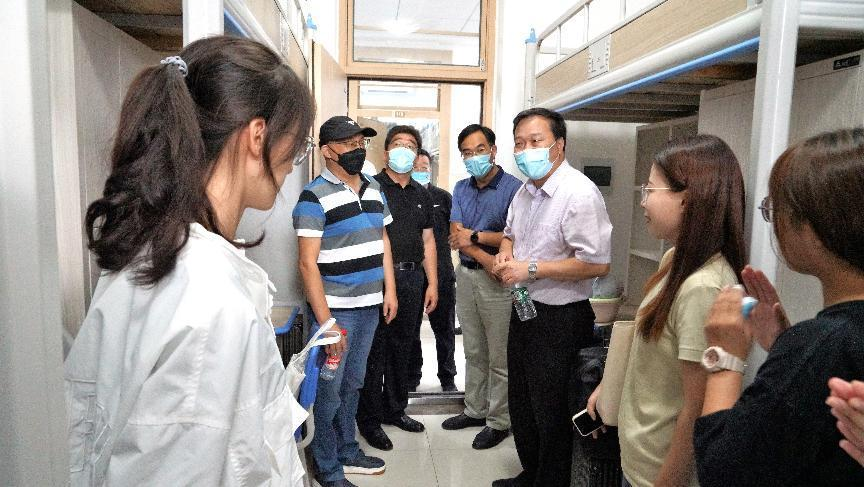 随后,校领导在公司领导的陪同下走进公司新生宿舍,与新生畅谈开学新气象,嘱咐员工及时向家长告知报到成功,让父母放心;领导们还对新同学的健康情况以及宿舍的适应情况进行了亲切的关怀,耐心地为同学们解答宿舍的相关问题,提醒大家遵守疫情管理的相关规定,养成健康有序的学习和生活习惯。