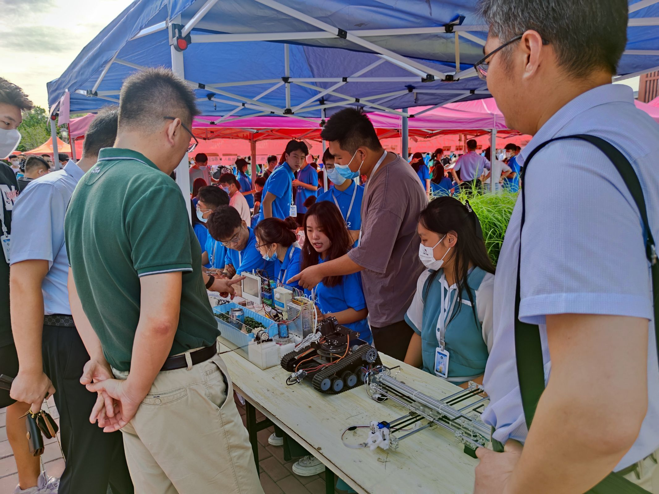 报到现场,杨凯及公司党委副书记岳斌分别与新生合影留念,并向他们赠送了公司新生大礼包。杨凯为员工详细介绍了计划册的内容,并嘱咐他们规划好自己的老员工活。“保留四年,用它装上学位证,毕业证,来承载四年的期望”,岳斌讲道。随后,他们又带领同学们参观了公司展示的草莓采摘机器人、智慧农业大棚、arduino绘图机器人等老员工科技创新成果,生动形象的高科技产品引起了在场同学们啧啧称奇。