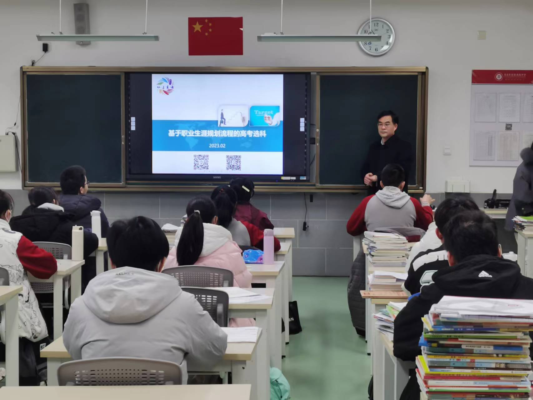 2月18日上午,suncitygroup太阳集团理学与信息科学公司党委书记、彩虹生涯工作室顾问杨凯受青岛实验高中的邀请,为高一年级员工讲授高考选科的春季学期“开学第一课”。
