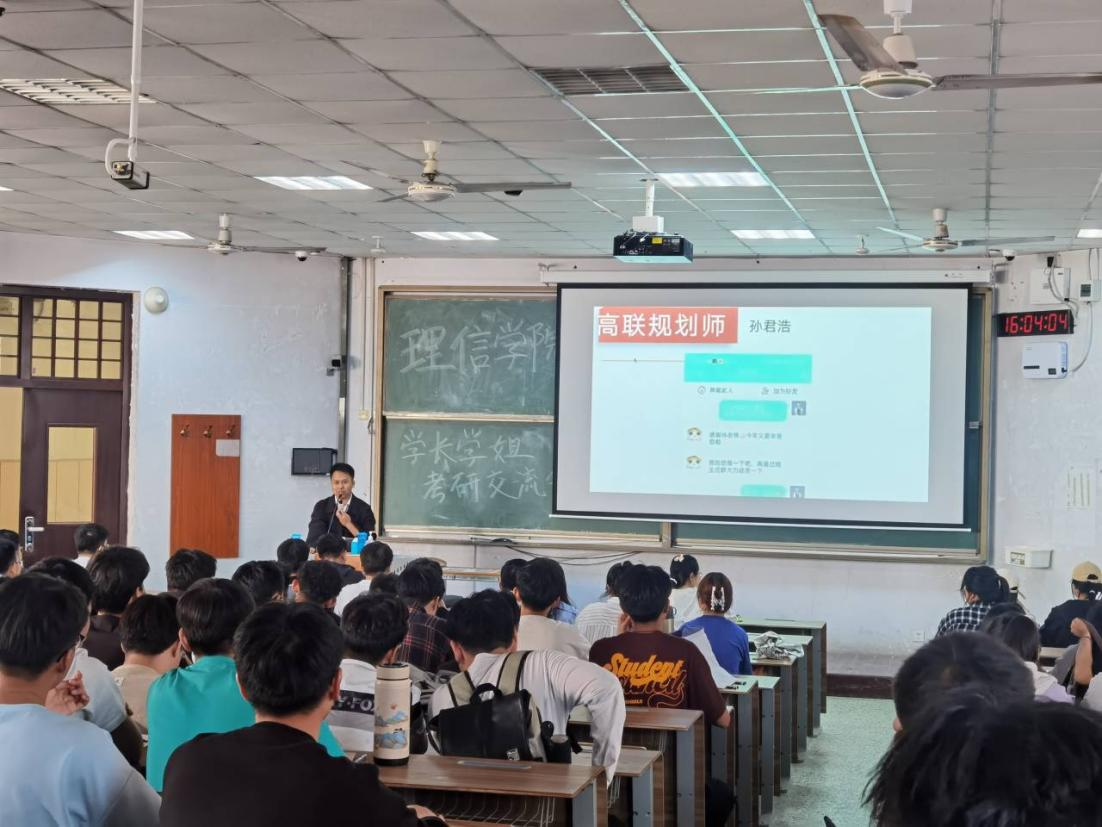 会上,高联规划师孙君浩就考研新形势向同学们做了详细的介绍,把握考研的新要求,应对考研的新变化是考研者需要了解和掌握的知识。他系统讲述如何通过中国研究生招生信息网等考研频道获取各个院校的招生简章、报录比、复试基本要求等信息,合理选择报考院校,他还提醒同学们,在面对考研新形势时,要保持冷静和自信,不要盲目跟风。