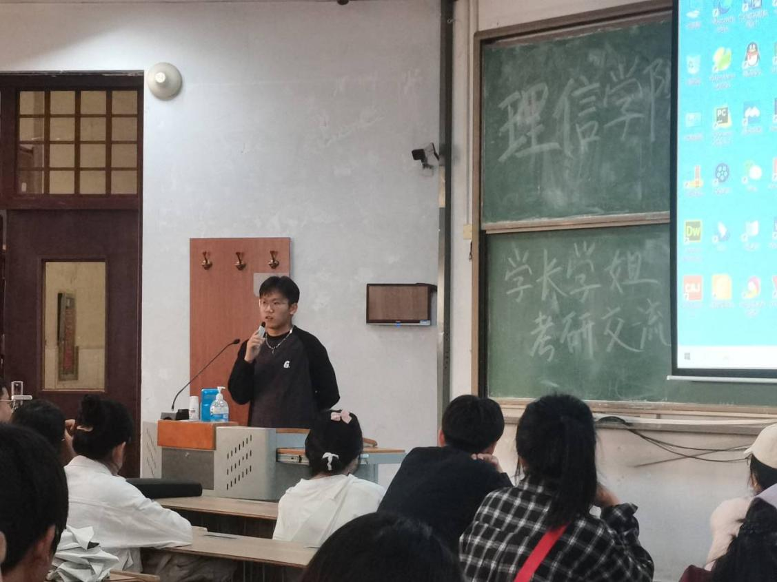 考取长安大学的刘座鹏、华北理工大学的徐嘉铭、中国石油大学的刘笑杉、山东科技大学的王传铜分别从报考方向、学习进度规划、择校经验、日常学习攻略、考研新形势等方面,与现场的同学们进行了交流和分享。刘座鹏以自己的亲身经历为例,提醒同学们,在选择报考方向时,要结合自己的基础和优势,不要盲目跟风或者受到外界的影响。徐嘉铭以自身为例,讲述考研调剂相关技巧,建议同学们做好复试学习规划,增强考研信心。刘笑杉讲述了考研过程中时间分配的问题,提醒同学们不要过分追求学习时间,要更加注重学习效率。王传铜强调,在复习过程中要注重基础知识的巩固和拓展,不要只追求应试技巧,时刻保持良好的心态。