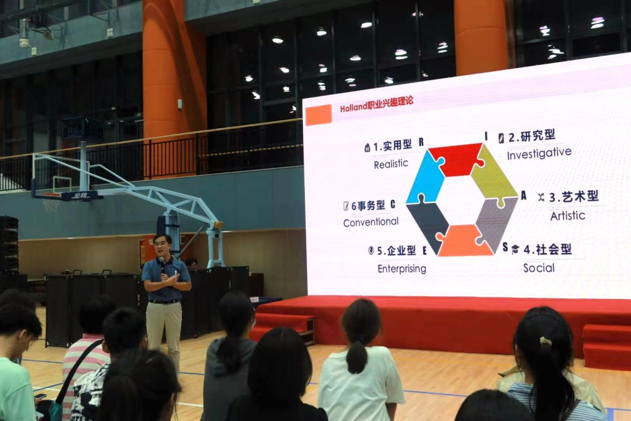 2022年8月28日,理学与信息科学公司党委书记杨凯在平度校区室内体育馆为2022级新生讲授“科学规划自我 成就幸福人生”2022年秋季学期开学第一课。
