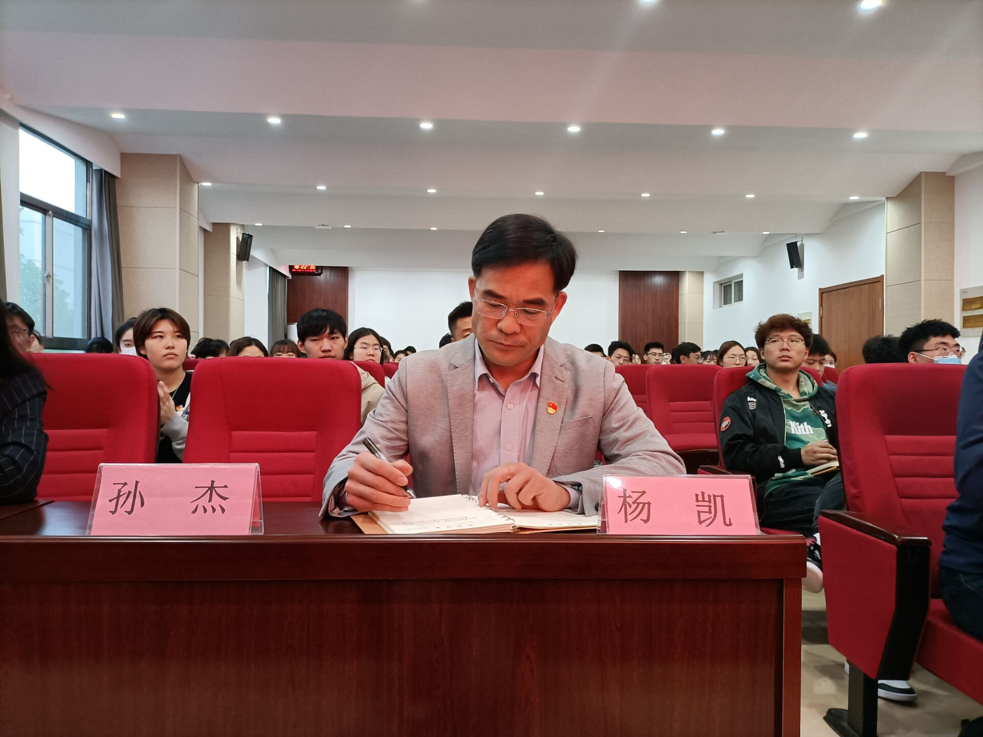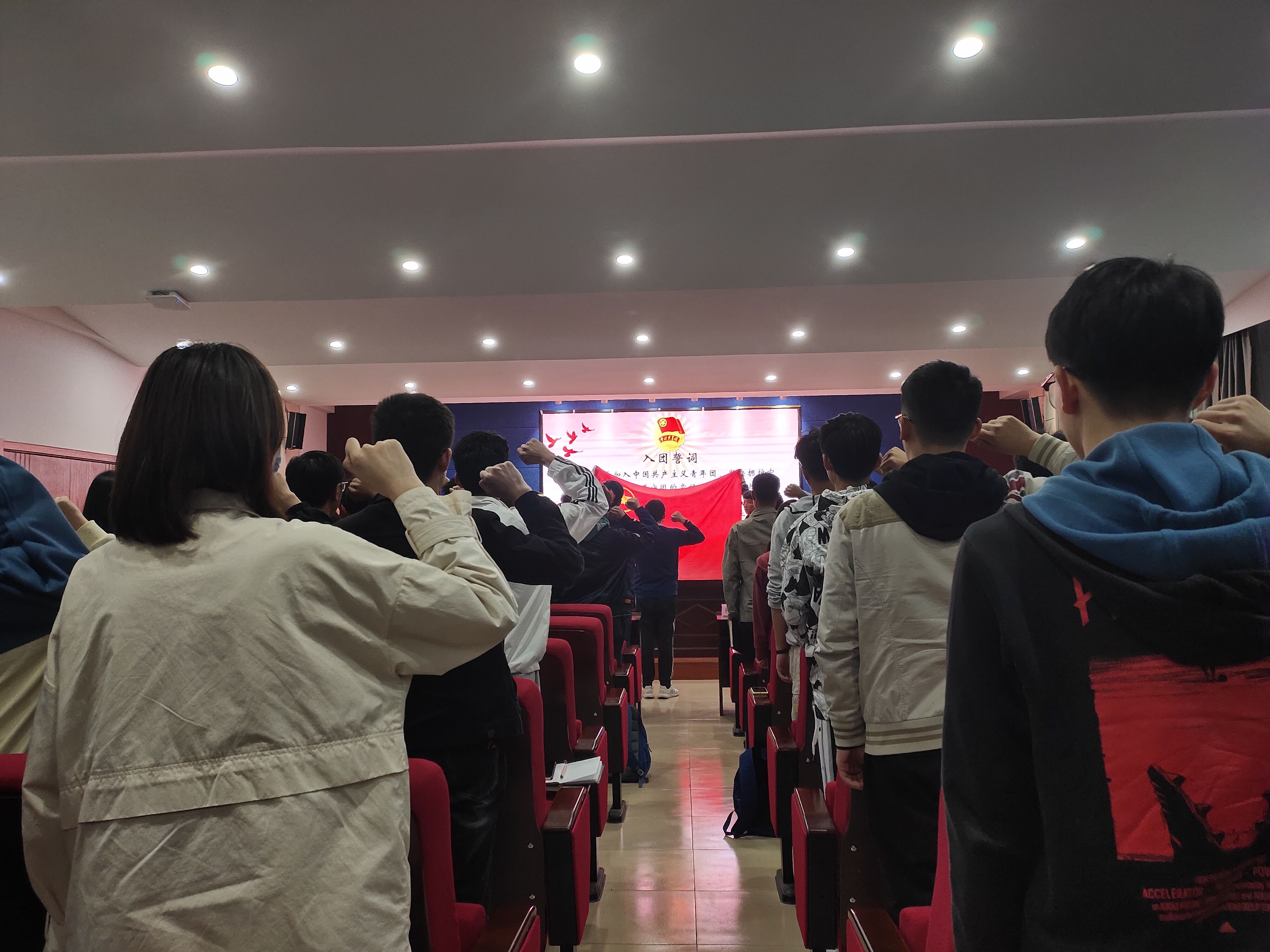 首先,孙杰带领全体团员进行宣誓,面对鲜艳的团旗,重温入团誓词:“我志愿加入中国共产主义青年团,坚决拥护中国共产党的领导,遵守团的章程,执行团的决议,履行团的义务,严遵团的纪律,勤奋学习,积极工作,吃苦在前,享受在后,为共产主义事业而奋斗。”铿锵有力的宣誓,表达了团员们面对总书记“爱国爱民、锤炼品德、勇于创新、实学实干”的殷切嘱托,高扬理想,坚定信念,积极投身祖国建设、为人民服务的坚定信念。