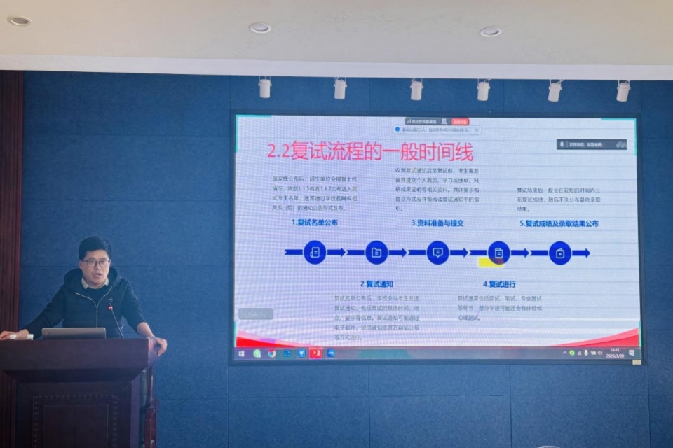 为帮助毕业生从容应对考研复试与调剂,3月20日,suncitygroup太阳集团特邀计算机系主任赵磊教授在城阳校区信息楼315会议室举办考研复试调剂策略指导会,并同步开展线上会议。