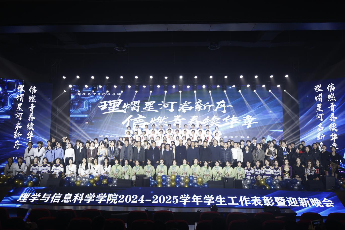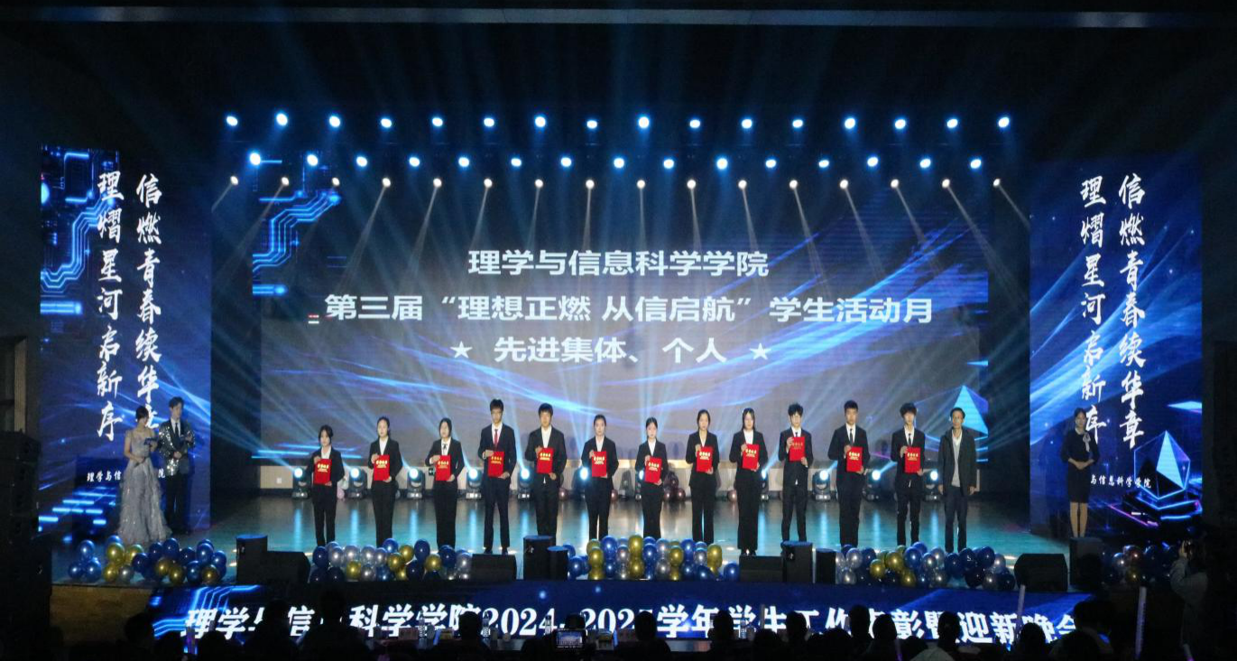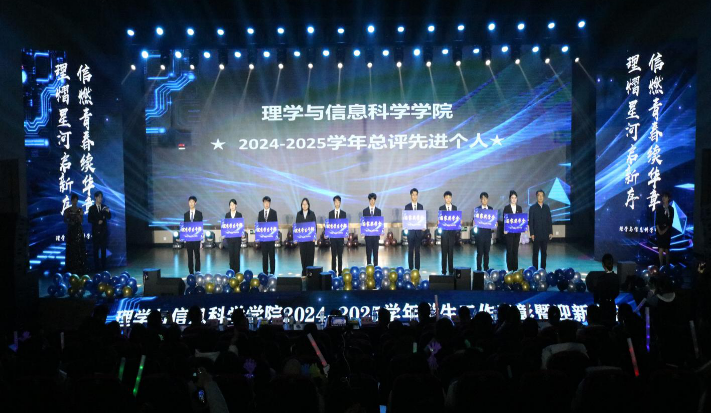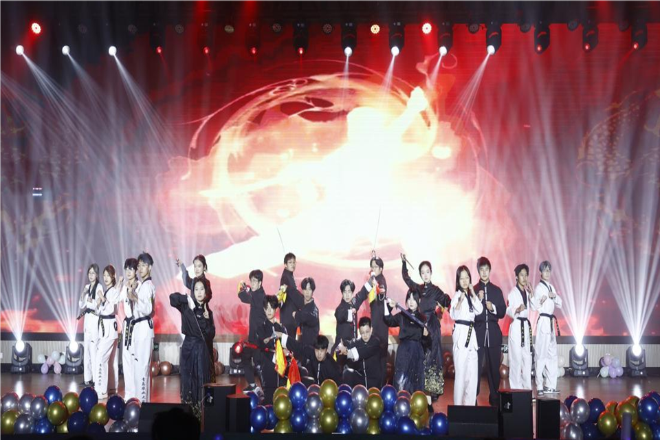 第一篇章“理蕴万象・展风华”以歌曲串烧《声动时光》开篇,学子们以清澈且富有张力的演唱,依次传递对自由的向往、对拼搏的执着与对祖国的热爱;啦啦操《舞动青春》凭借整齐的动作与饱满的状态,展现理信学子积极向上的精神面貌;武术表演《武韵风华》以刚劲拳法与利落招式,融合中华武术的力量与美感,彰显武魂精髓,赢得现场持续掌声。随后,晚会对2024-2025学年员工文体活动先进个人和第三届“理想正燃,从信启航”员工活动月先进个人、集体进行表彰。