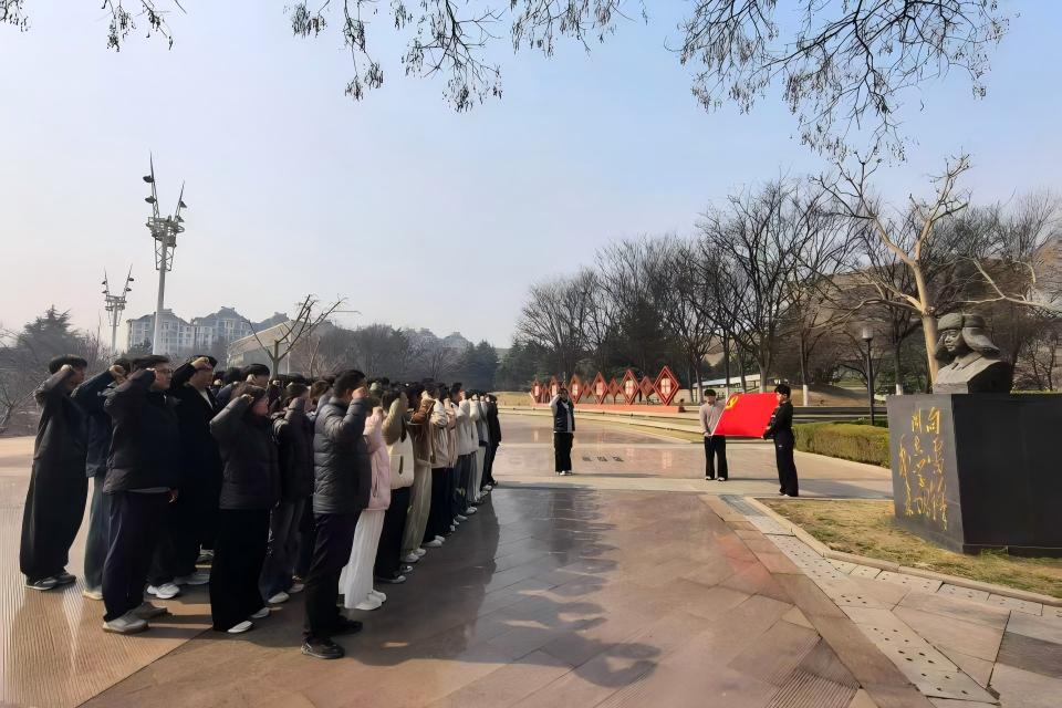 理论学习结束后,全体党员和积极分子同学徒步前往城阳区人民广场,沿路开展净化环境志愿服务活动。大家分工协作,对广场及周边道路、绿化带及公共设施进行细致清理,捡拾烟头、纸屑等杂物,以实际行动美化公共环境,传递文明风尚。活动最后,全体党员在广场雷锋雕像前整齐列队,面向党旗庄严举起右拳,重温入党誓词。