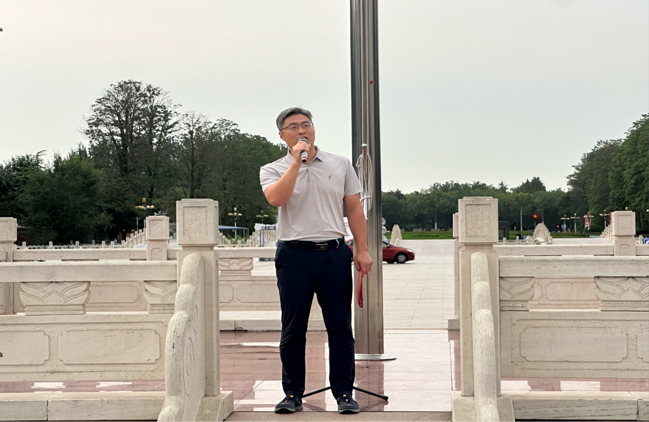 员工代表杨彦以“厚植爱国情怀,勇担历史使命”为题,在国旗下发表演讲,他回顾中国人民抗日战争暨世界反法西斯战争历史,讲述中华儿女以血肉之躯赢得反抗外敌入侵首次完全胜利的历程,提及纪念大会阅兵式展现的军队现代化成就与和平决心。他号召青年传承抗战精神、勇攀创新高峰、守护和平发展、践行团结协作,呼吁老员工以知识为基、创新为翼、担当为魂,将爱国情转化为行动,为民族复兴与世界和平贡献青春力量。