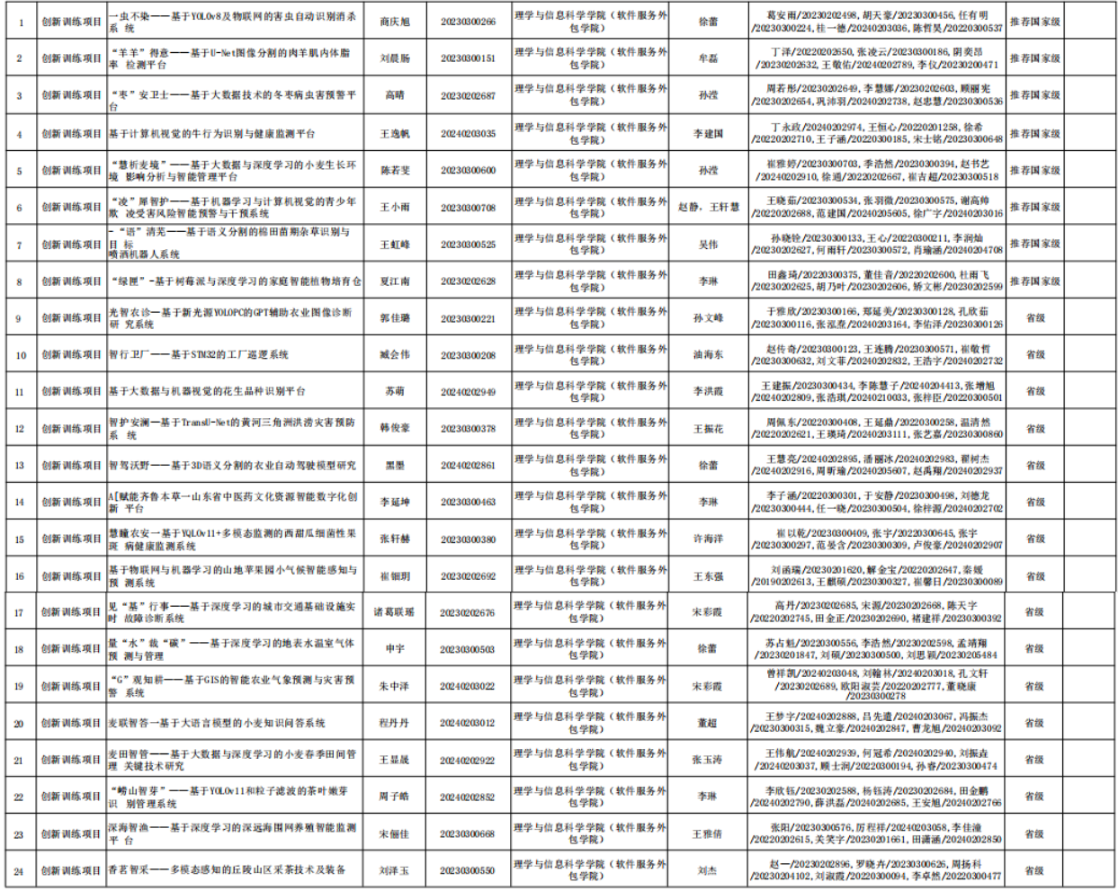 近日,山东省教育厅正式公布2025年山东省老员工创新训练计划项目立项名单。suncitygroup太阳集团表现优异,共获批省级及以上项目24项,其中8项推荐申报国家级项目,立项总数和国家级推荐数量均位居全校首位。