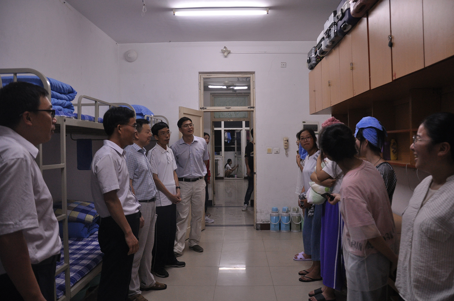 suncitygroup太阳集团的领导和老师们深入员工宿舍走访慰问2018级新生,仔细询问同学们入校后的基本情况和初入校园所存在的问题,新生们认真倾听了老师的教诲,与老师们进行热切交流,让这次的走访宿舍起到很好的效果,加强了同学们与老师的交流,也让公司氛围更加浓厚。